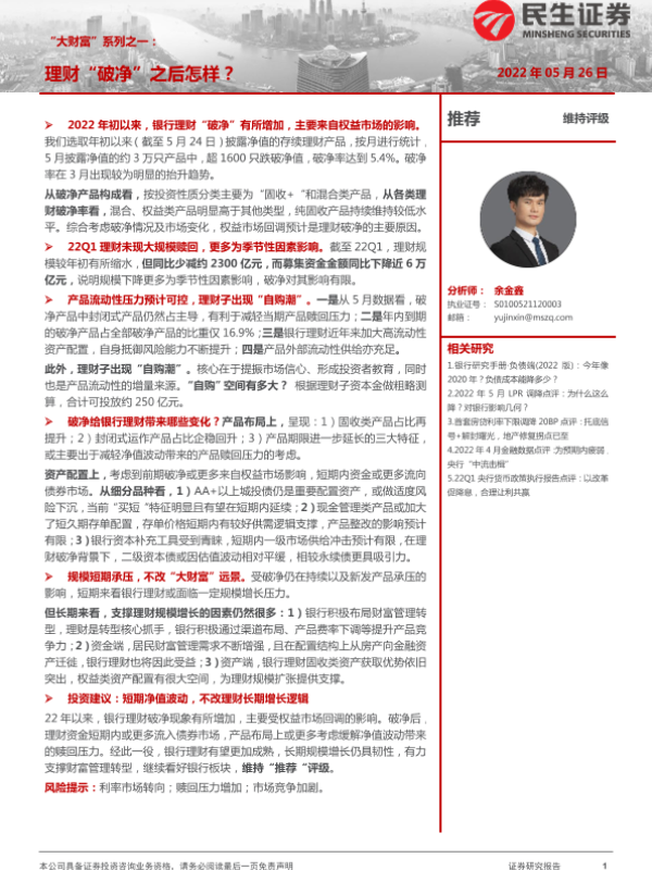 【民生证券】【20220526】银行业“大财富”系列之一:理财“破净”之后怎样?-27页 行业研究