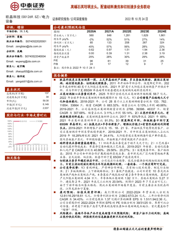 【中泰证券】【20221024】20221024-中泰证券-欧晶科技-001269.SZ-高端石英坩埚龙头,配套硅料清洗和切削液多业务联动-35页 行业研究