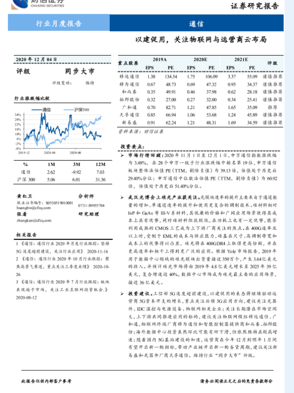 【财信证券】【20201204】通信行业月度报告:以建促用,关注物联网与运营商云布局-10页 行业研究