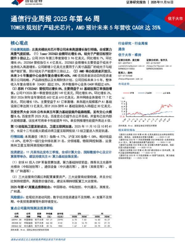 【国信证券】【202511】通信行业周报2025年第46周:TOWER规划扩产硅光芯片,AMD预计未来5年营收CAGR达35%-13页 证券期货研究报告