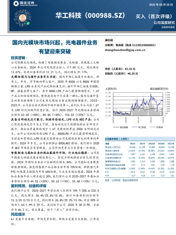 【国金证券】【20250520】国内光模块市场兴起,光电器件业务有望迎来突破-22页 公司研究