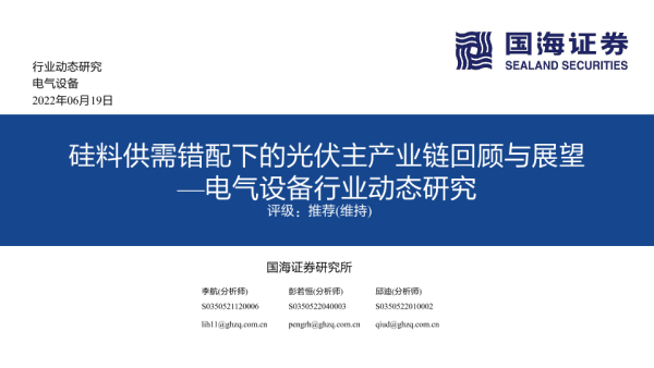【国海证券】【20220619】硅料供需错配下的光伏主产业链回顾与展望 —电气设备行业动态研究-44页 行业研究