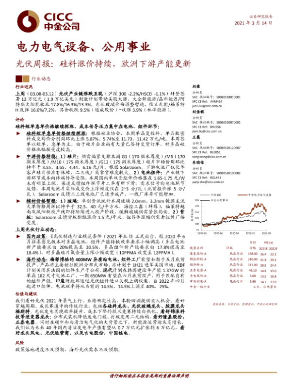 【中金公司】【20210314】20210314-中金公司-电力电气设备、公用事业光伏周报:硅料涨价持续,欧洲下游产能更新-9页 行业研究