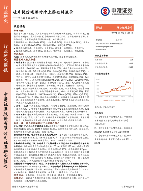 【申港证券】【20210301】电气设备行业周报:硅片提价减薄对冲上游硅料涨价-38页 行业研究