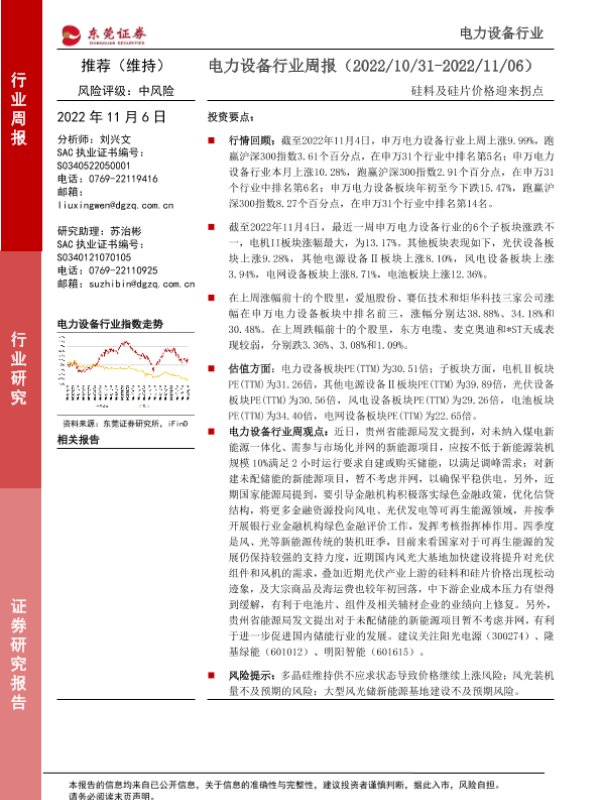 【东莞证券】【20221106】电力设备行业周报:硅料及硅片价格迎来拐点-13页 行业研究