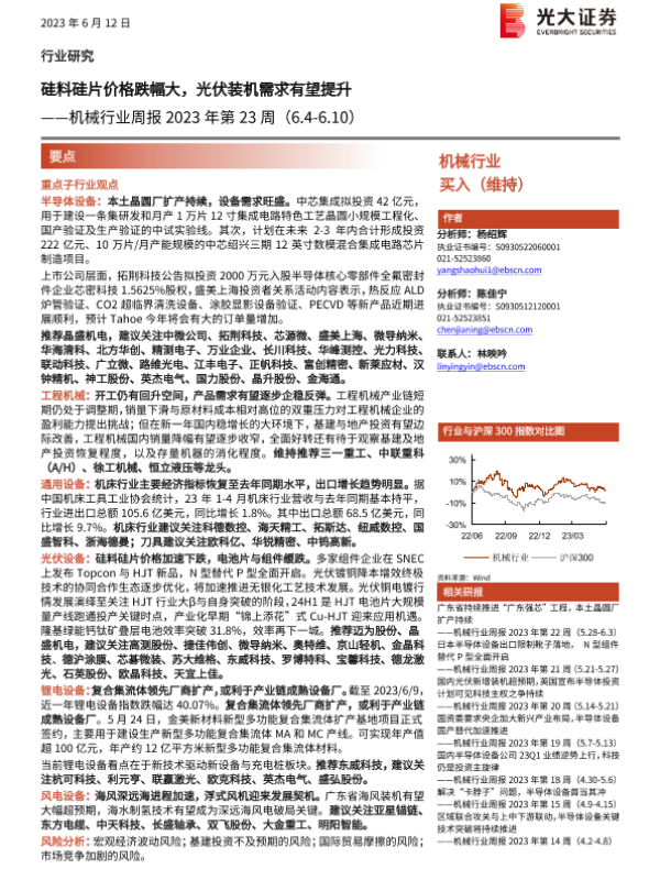 【光大证券】【20230612】机械行业周报2023年第23周:硅料硅片价格跌幅大,光伏装机需求有望提升-20页 行业研究