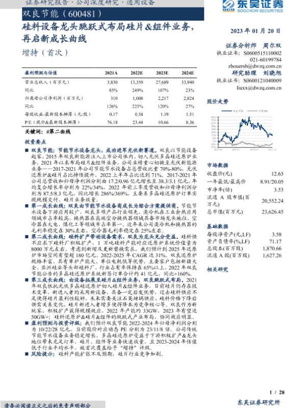 【东吴证券】【20230120】双良节能(600481)硅料设备龙头跳跃式布局硅片&组件业务,再启新成长曲线-28页 行业研究