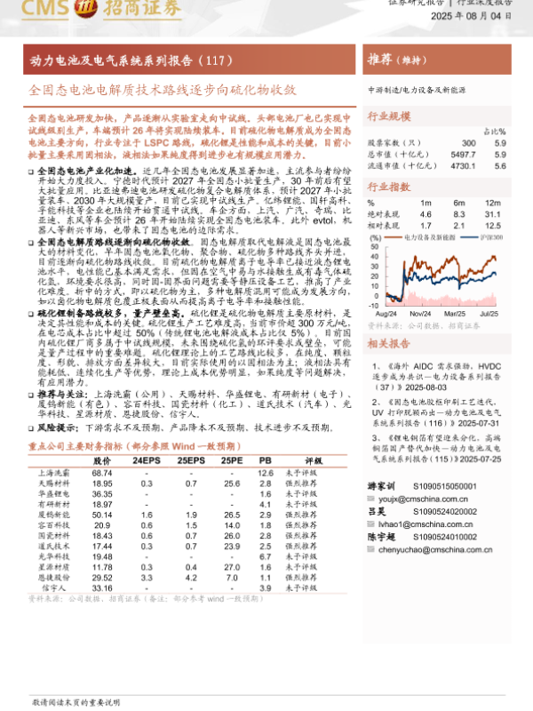 【海通证券】【20250804】全固态电池电解质技术路线逐步向硫化物收敛-13页 证券期货研究报告