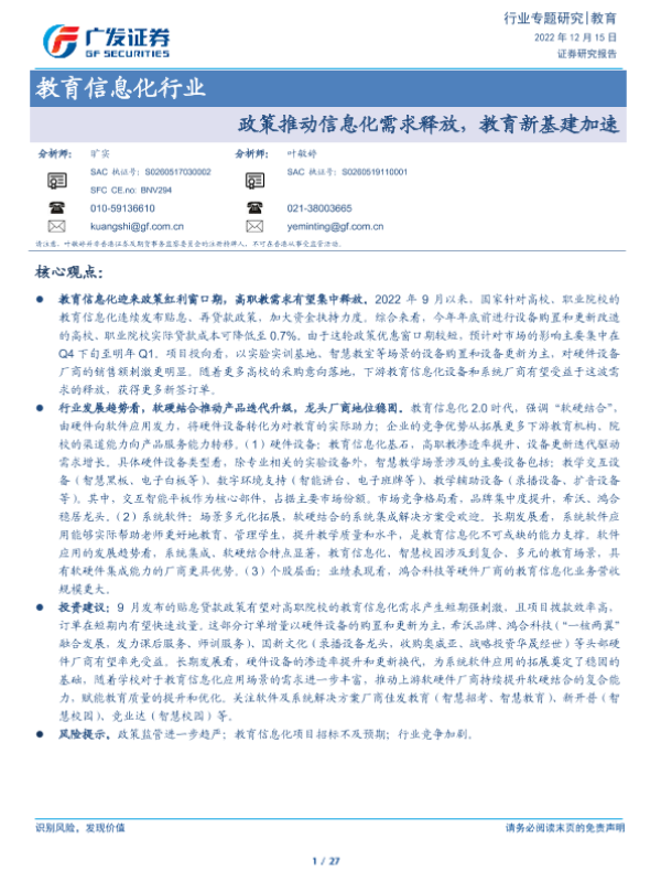 【广发证券】【20221215】教育信息化行业:政策推动信息化需求释放,教育新基建加速-27页 行业研究