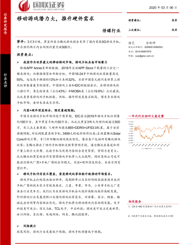 【国联证券】【20200306】传媒行业:移动游戏潜力大,推升硬件需求-4页 行业研究