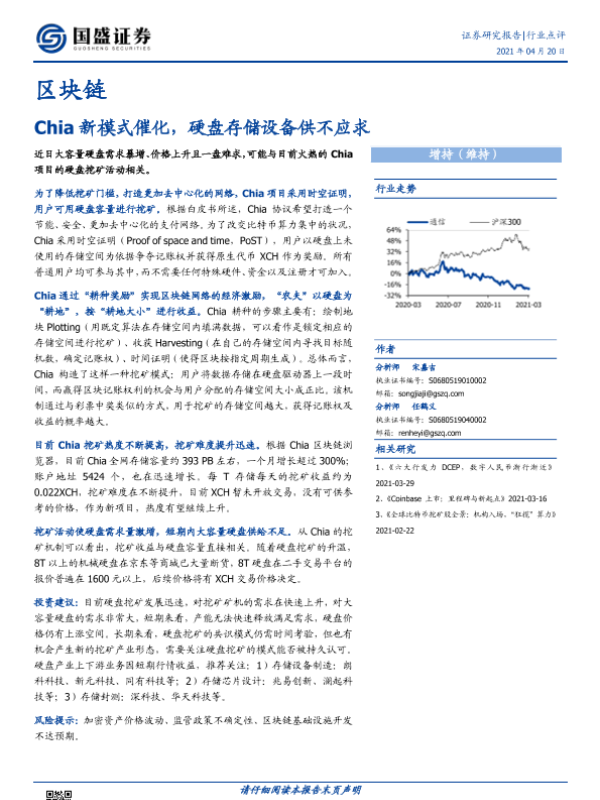 【国盛证券】【20210420】区块链:Chia新模式催化,硬盘存储设备供不应求-2页 行业研究