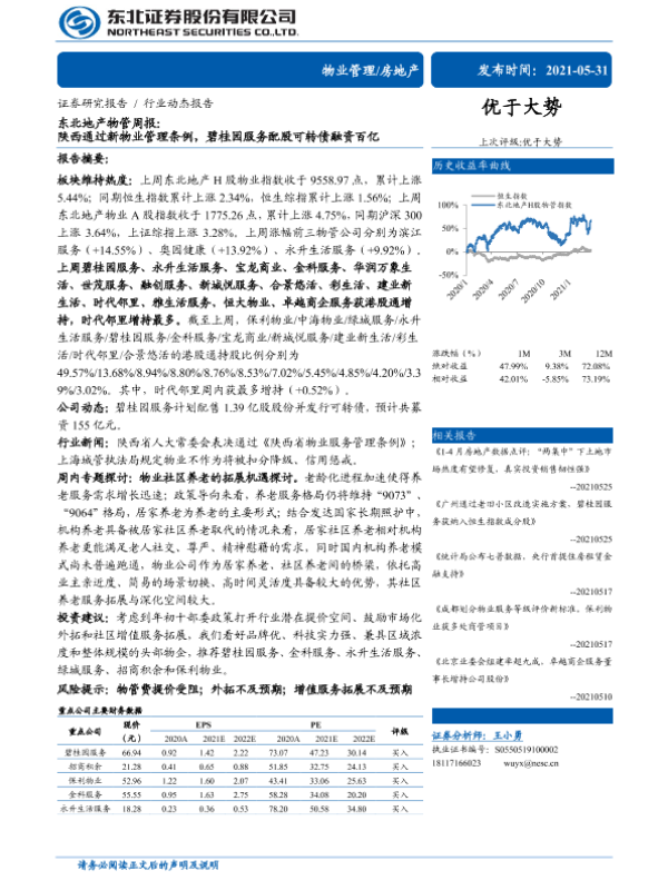 【东北证券】【20210531】东北地产物管周报:陕西通过新物业管理条例,碧桂园服务配股可转债融资百亿-15页 行业研究