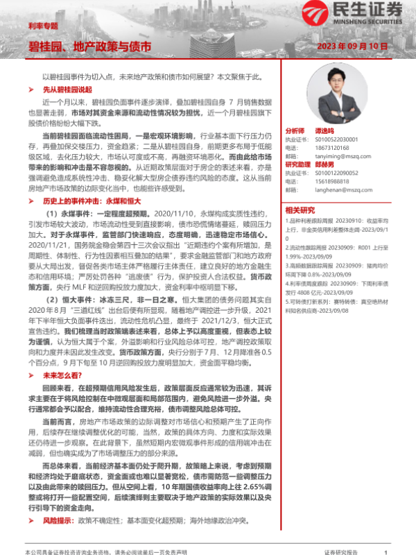 【民生证券】【20230910】利率专题:碧桂园、地产政策与债市-26页 行业研究