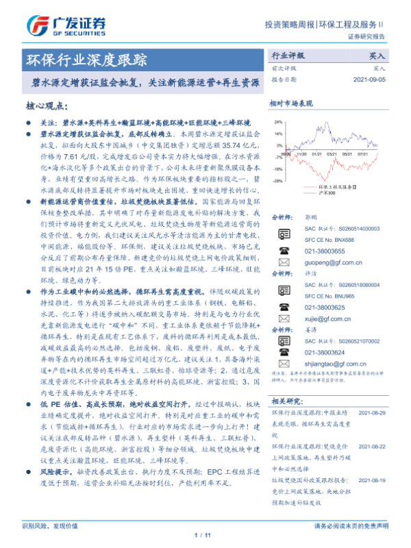 【广发证券】【20210905】环保行业深度跟踪:碧水源定增获证监会批复,关注新能源运营+再生资源-11页 行业研究