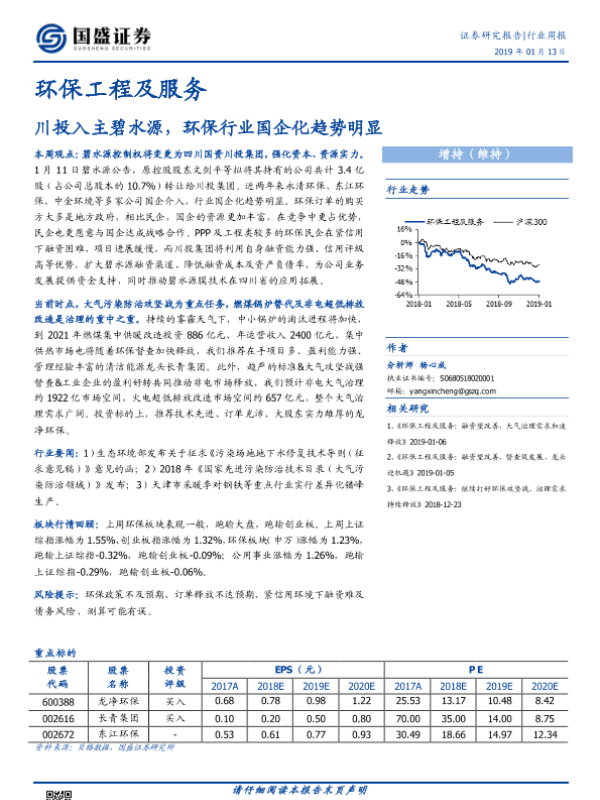 【国盛证券】【20190113】环保工程及服务行业周报:川投入主碧水源,环保行业国企化趋势明显-9页 行业研究