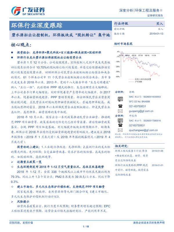 【广发证券】【20190113】环保行业深度跟踪:碧水源拟出让控制权,环保板块成“股权转让”集中地-18页 行业研究