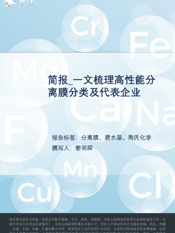 【头豹研究院】【20220914】简报_一文梳理高性能分离膜分类及代表企业-14页 行业研究