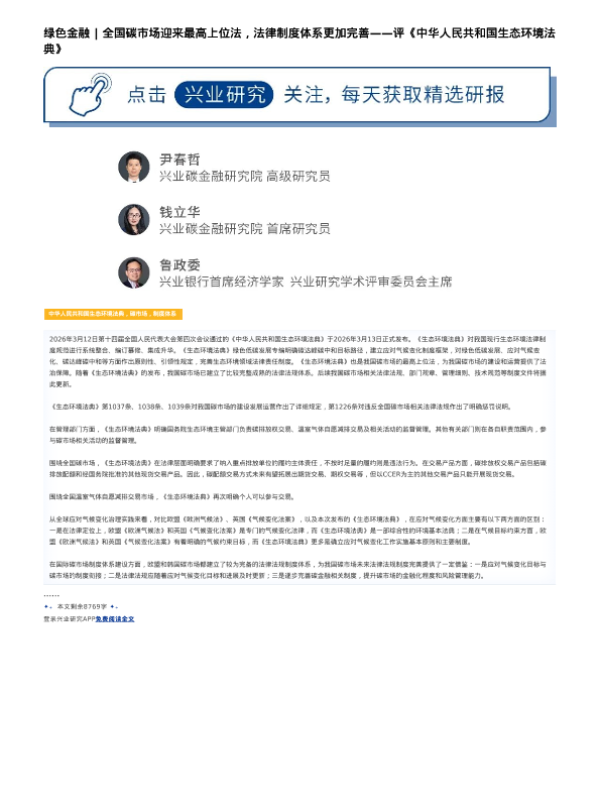 【兴业研究】【202603】全国碳市场迎来最高上位法,法律制度体系更加完善——评《中华人民共和国生态环境法典》-4页 政策文件
