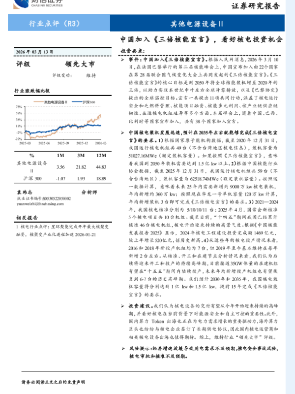 【财信证券】【202603】中国加入《三倍核能宣言》,看好核电投资机会-2页 证券期货研究报告