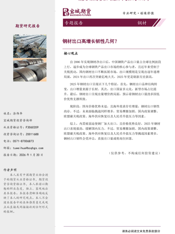 【宝城期货投资咨询部】【202601】钢材出口高增长韧性几何?-13页 证券期货研究报告