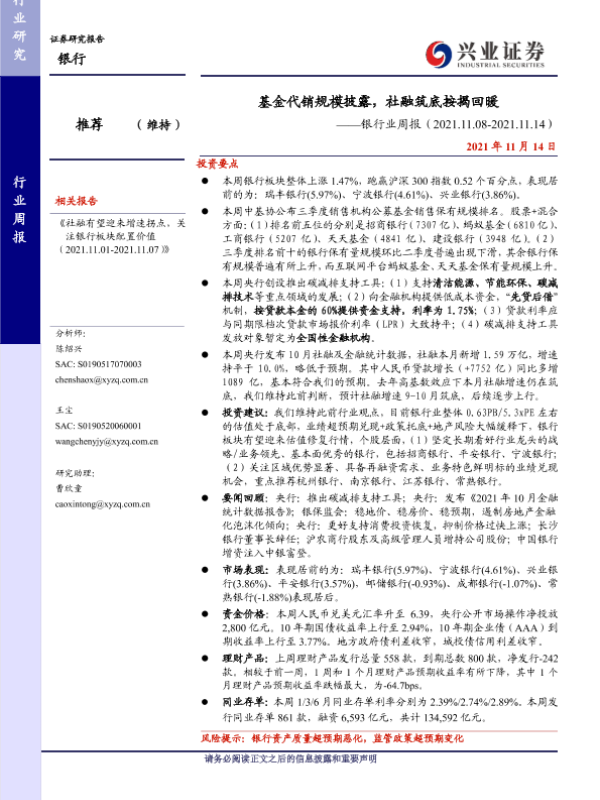 【兴业证券】【20211114】银行业周报:基金代销规模披露,社融筑底按揭回暖-16页 行业研究