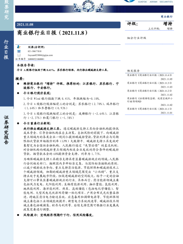 【国泰君安证券】【20211108】商业银行业日报-3页 行业研究