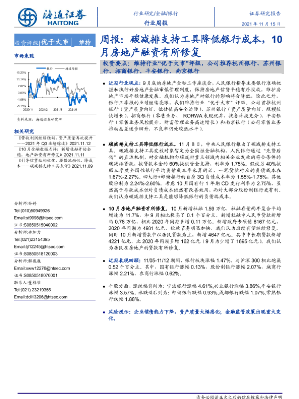 【海通证券】【20211115】碳减排支持工具降低银行成本,10月房地产融资有所修复-8页 行业研究