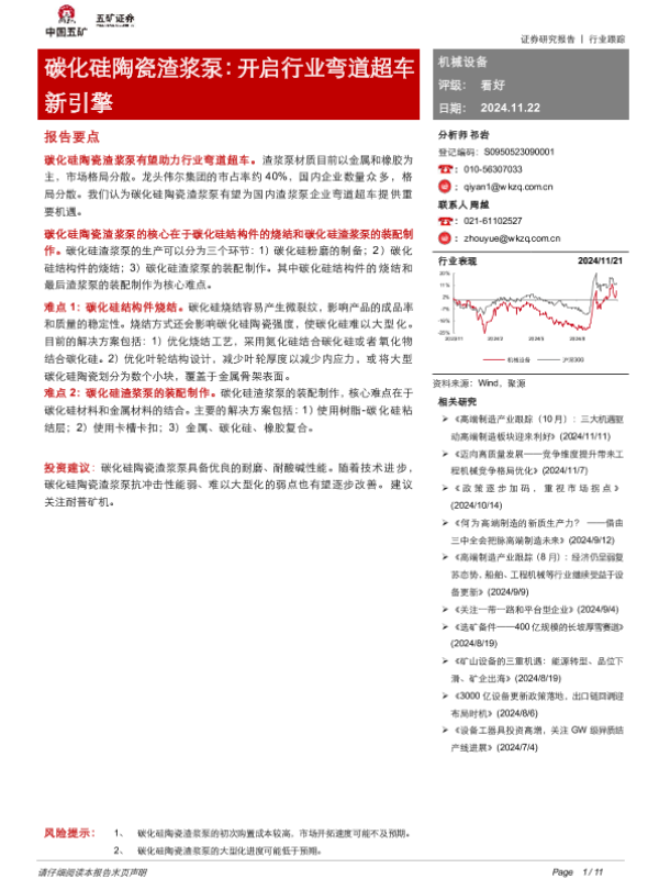 【五矿证券】【20241122】机械设备行业:碳化硅陶瓷渣浆泵,开启行业弯道超车新引擎-11页 行业研究
