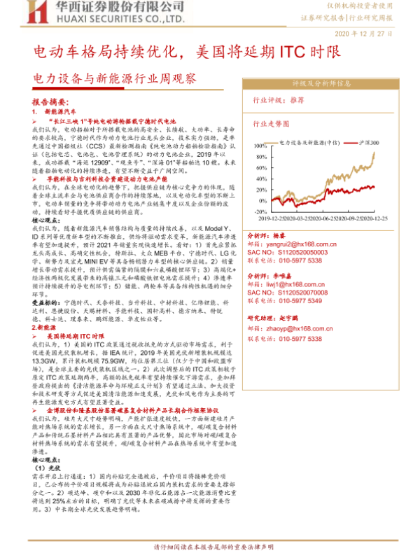 【华西证券】【20201227】电力设备与新能源行业周观察:电动车格局持续优化,美国将延期ITC时限-16页 行业研究