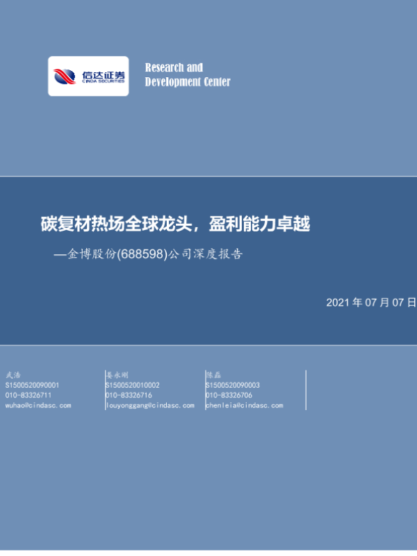 【信达证券】【20210707】20210707-信达证券-金博股份-688598.SH-公司深度报告:碳复材热场全球龙头,盈利能力卓越-24页 行业研究