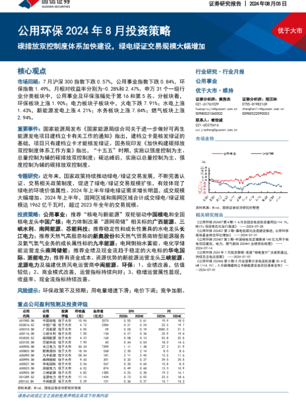【国信证券】【20240805】2024年8月投资策略:碳排放双控制度体系加快建设,绿电绿证交易规模大幅增加-28页 行业研究