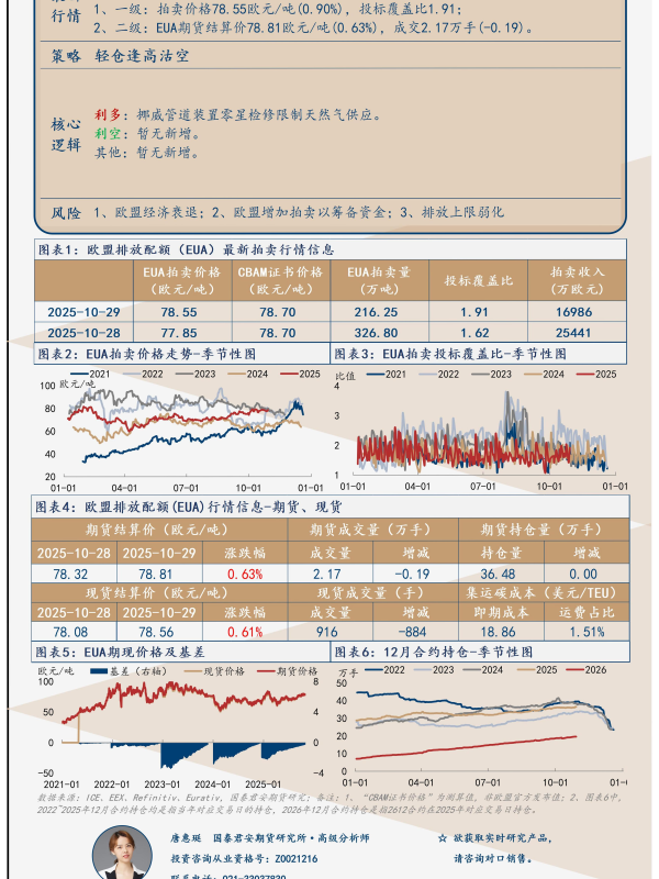 【国泰君安期货】【202510】欧盟碳市场行情简报(2025年第188期)-1页 证券期货研究报告