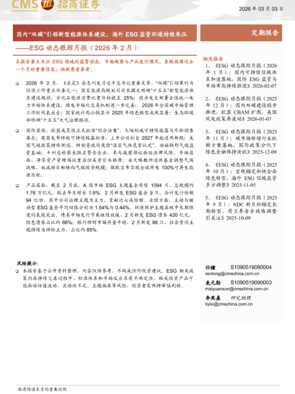 【海通证券】【202603】ESG动态跟踪月报(2026年 2月)-22页 证券期货研究报告