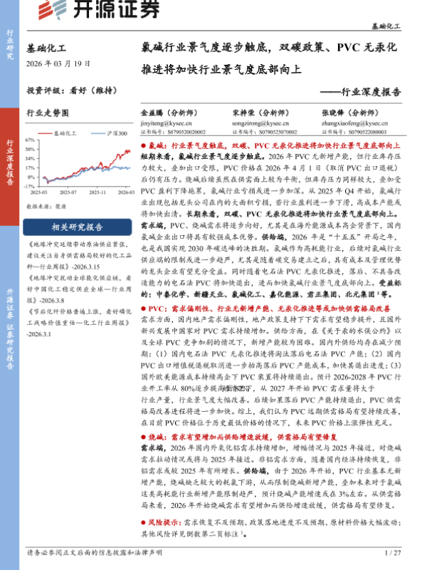 【开源证券】【202603】氯碱行业景气度逐步触底,双碳政策、PVC无汞化推进将加快行业景气度底部向上-27页 证券期货研究报告