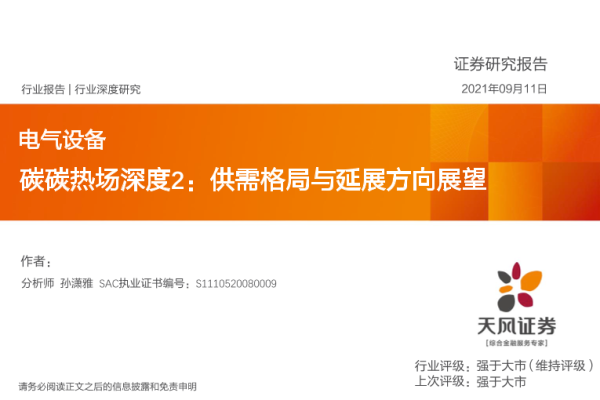【天风证券】【20210911】电气设备行业碳碳热场深度2:供需格局与延展方向展望-18页 行业研究