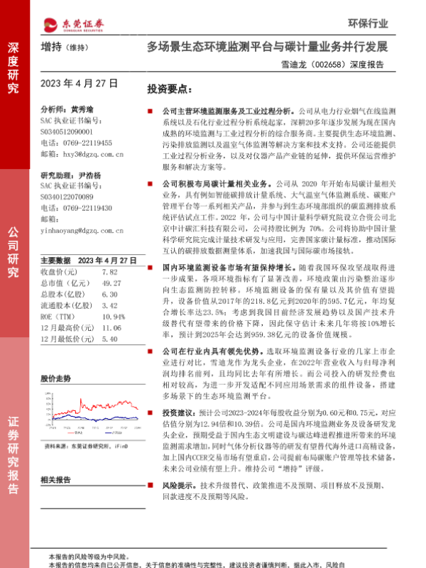 【东莞证券】【20230427】20230427-东莞证券-雪迪龙-002658.SZ-深度报告:多场景生态环境监测平台与碳计量业务并行发展-17页 行业研究