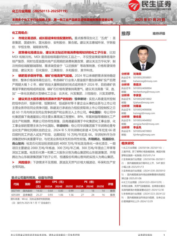 【民生证券】【20250120】20250120-民生证券-化工行业周报:本周多个化工子行业指数上涨,第一批工业产品碳足迹核算规则推荐清单公布-34页 行业研究