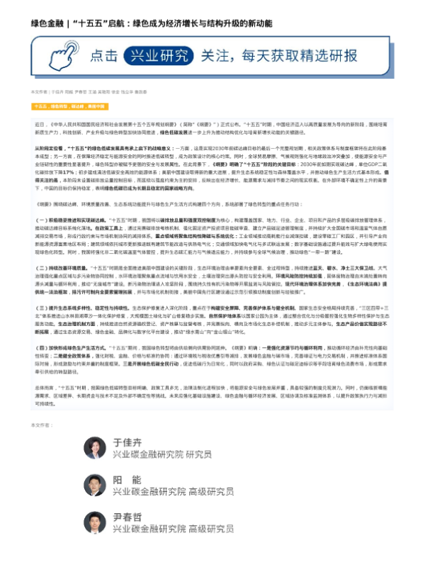 【兴业研究】【2023】绿色金融|“十五五”启航:绿色成为经济增长与结构升级的新动能-5页 政策文件