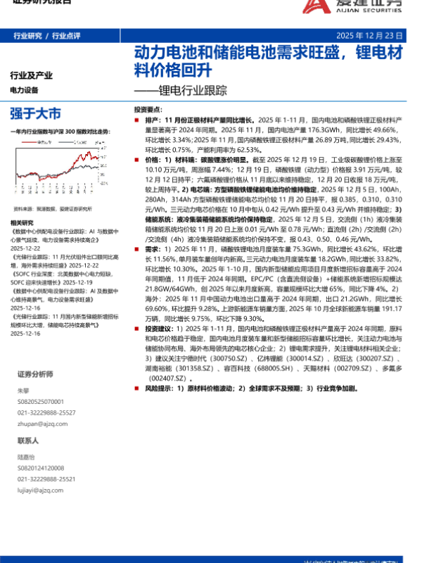 【爱建证券】【202512】动力电池和储能电池需求旺盛,锂电材料价格回升-8页 证券期货研究报告