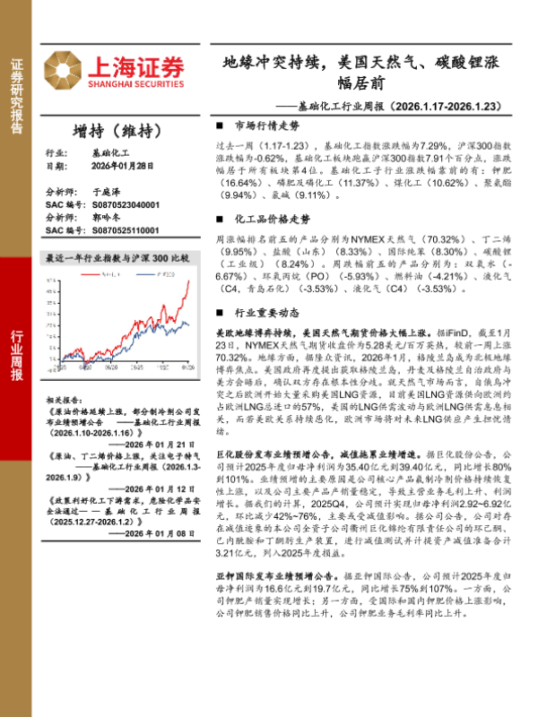 【上海证券】【202601】地缘冲突持续,美国天然气、碳酸锂涨幅居前-10页 证券期货研究报告