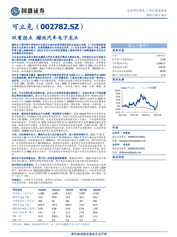 【开源证券】【20220522】可立克-002782.SZ-公司首次覆盖报告:全球知名的磁性元件供应商,新能源助力腾飞-24页 公司研究
