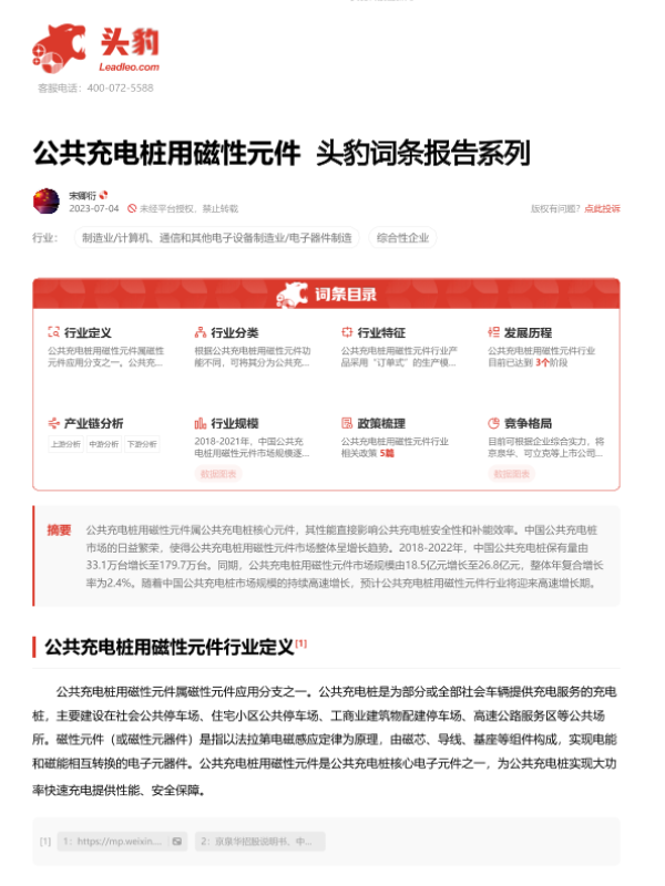 【头豹研究院】【20230721】公共充电桩用磁性元件 头豹词条报告系列-18页 行业研究
