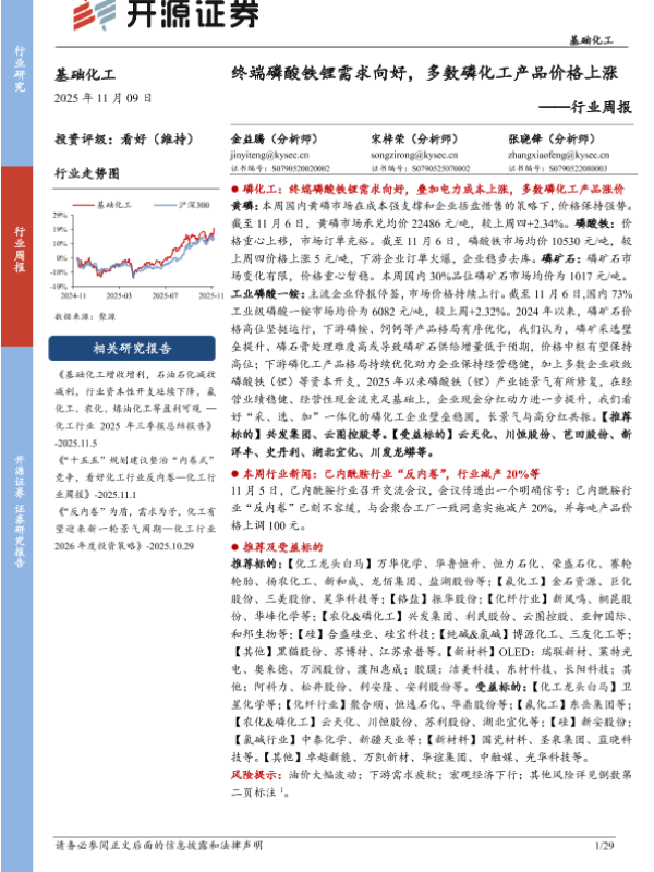 【开源证券】【202511】终端磷酸铁锂需求向好,多数磷化工产品价格上涨-29页 证券期货研究报告