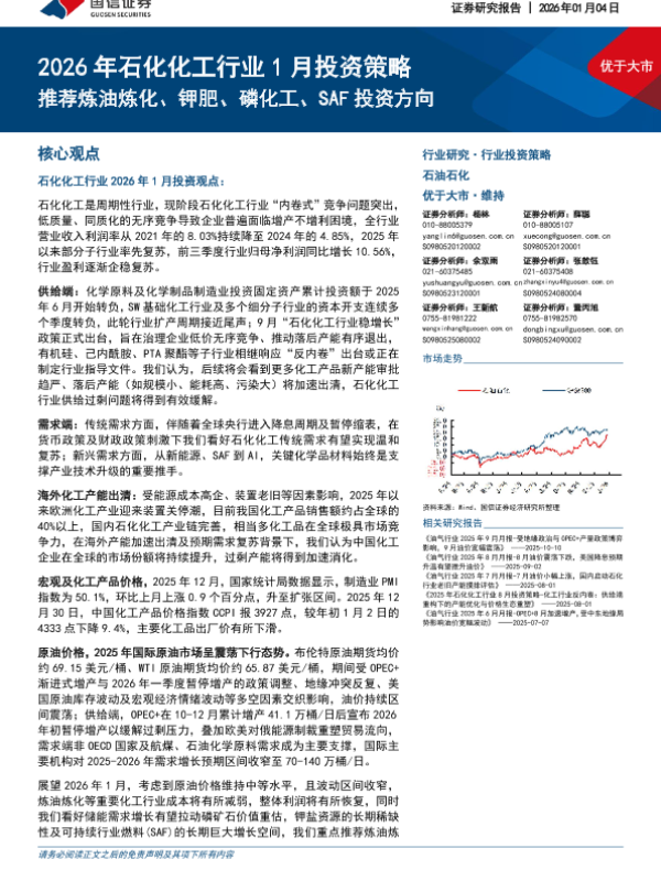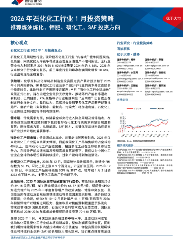 【国信证券】【202601】2026年石化化工行业1月投资策略:推荐炼油炼化、钾肥、磷化工、SAF投资方向-35页 证券期货研究报告