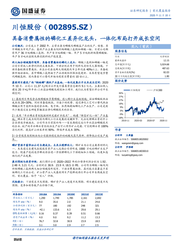 【国盛证券】【20201118】川恒股份-具备消费属性的磷化工差异化龙头,一体化布局打开成长空间-20页 行业研究