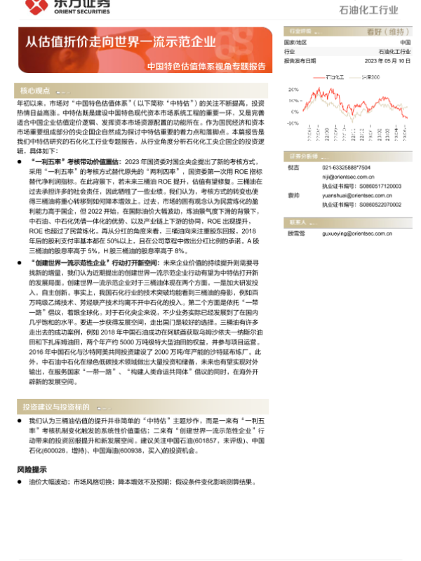 【东方证券】【20230510】20230510-东方证券-石油化工行业中国特色估值体系视角专题报告:从估值折价走向世界一流示范企业-19页 行业研究
