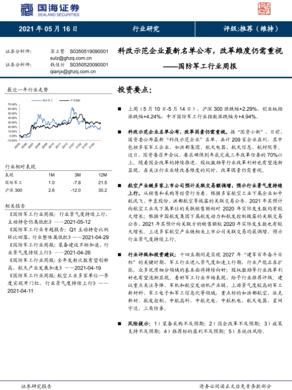 【国海证券】【20210516】国防军工行业周报:科改示范企业最新名单公布,改革维度仍需重视-12页 行业研究