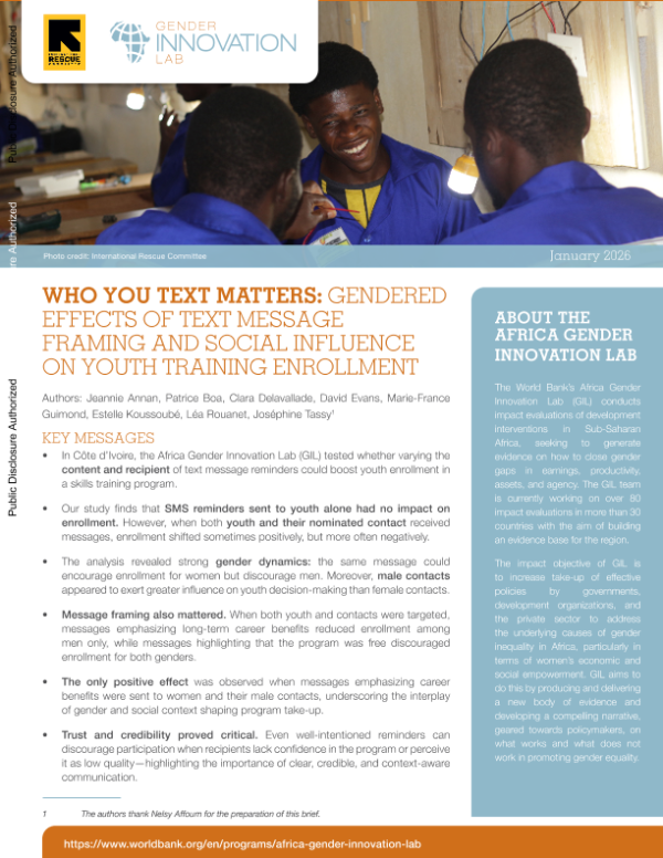 【World Bank】【202601】WHO YOU TEXT MATTERS GENDERED EFFECTS OF TEXT MESSAGE FRAMING AND SOCIAL INFLUENCE ON YOUTH TRAINING ENROLLMENT-7页 行业研究