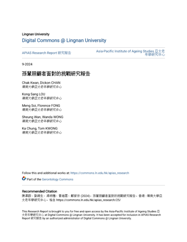 【岭南大学亚太老年学研究中心】【202409】孙辈照顾者面对的挑战研究報告-29页 行业研究