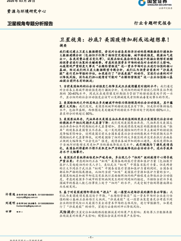 【国金证券】【20200329】卫星视角:抄底?美国疫情加剧或远超想象!-8页 行业研究